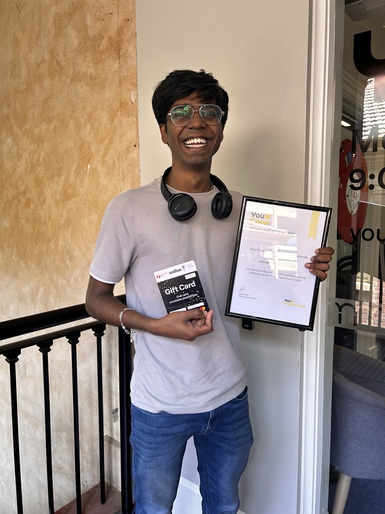 Ab was nominated by his peers and happily awarded with a voucher and a certificate, commemorating his volunteering efforts in 2024. Ab has since gone on to be hired as a YouX Ambassador. Congratulations to Ab!