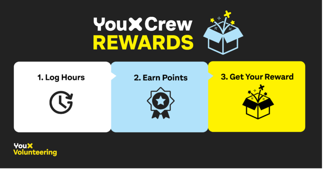 YouX Crew Rewards is our brand new volunteer reward and recognition program. Within this program, volunteers earn points for each shift they complete. There are currently two milestones volunteers can reach.
